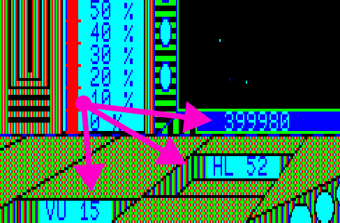 ◆ You can press F1 to activate a laser (F2 to turn it off); then holding down arrow keys will move a “crosshair” around. You cannot do any other kind of movement with the laser on.
