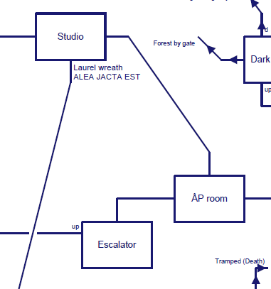 In any case, the only maze I’d call “straight” would be the lodestone maze. It honestly isn’t that traumatic to map compared with that evil one from Adventure and the only reason I see the Hamiltonian path being necessary is that in order to optimize the number of turns (given the low life on the lamp compared with how many steps are needed) there is a good chance a game restart is needed somewhere. Still, once someone gets to the “cave” portion of the game they can just save, wander through using the map noting where all the treasures are, then restore and go only for the important rooms.