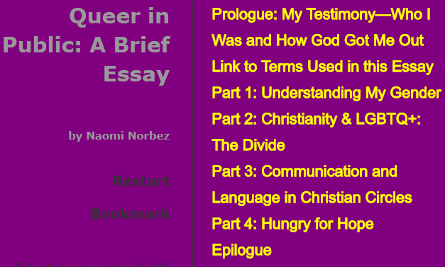 This is subtitled “A hypertext essay about the Christian & LGBT community”.