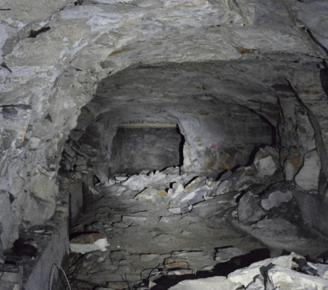 This is a huge chamber carved out of the native limestone. Rusting engine blocks in various states of completion, sit on test stands. The cavern continues north and there is an exit to the south.