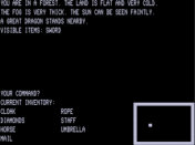 You’ll notice a lot of blank space; this is a compact way for the game to claim more than 200 locations when only some of them are implemented. Fortunately, navigation is less irritating than you’d think because there are no NORTH / SOUTH / EAST / WEST commands, you navigate by just pressing arrow keys.