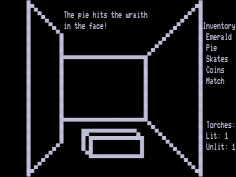 However, unlike that game (where it’s a red herring trap), here if you’re holding a “metal rod” the walls stay open. You can drop the jar and leave and the walls crush the jar and release a ghost, which says the word “mevar” as it leaves. (This is unfortunately somewhat inconsistent, since the crushing doesn’t work on other objects; fortunately the first thing I tested it on was the jar, otherwise, I could have been led far astray in solving the puzzle.)