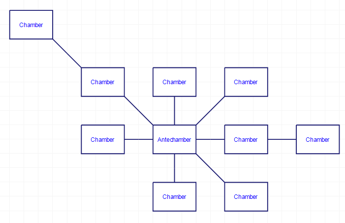 It’s a gimmick maze that’s very hard to describe, but I’ll do my best. The map has an “Antechamber” at the center and “spokes” leading out.