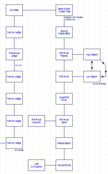 The rushing waters of the Great Rift River boil and churn about you. Steam fills the air as it rises from the waters below to from a dense fog overhead.