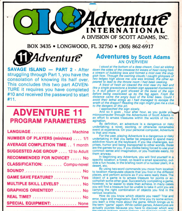 Alas, I can’t say here we have a forgotten masterpiece (although Kim Schuette writing in 1984 calls it a “jewel”) but it’s certainly of strong historical interest and proof that in 1981 Scott Adams wasn’t quite done yet thinking about advancing the craft of adventure games.