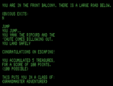 Possibly the text adventure record for “most impressive verb required to beat the game”.