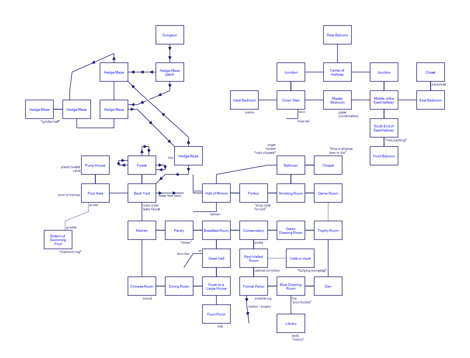 Even when tools are capable of supporting a piece of complex world modeling, that’s not the same as making it easy and natural to do. It’s quite plausible to say Scott Adams was scratching at the very limits of his system here. And certainly, the forced tightness of the text itself cannot be forgotten; for 1981 home computers the very words themselves were at a premium.