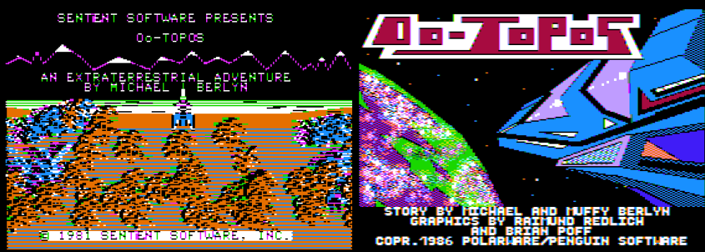Michael Berlyn, you see, wrote Suspended (1983), one of my favorite Infocom games. Oo-topos is his first game. He formed his own company (Sentient Software) with his wife Muffy Berlyn and self-published it.