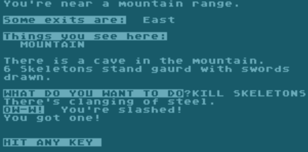 You just type KILL SKELETON over and over and eventually they go from six to zero; sometimes you miss. I get the impression the intent is to again be “cinematic” with the hitting/missing being a proxy for a more elaborate combat situation like in the movie. In terms of actual gameplay it’s just repetitive.