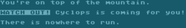 Unless you’re being chased by the Cyclops. After meeting the cyclops, you can “run away” to the west, then climb up CYCLOPS MOUNTAIN until you can go no farther…