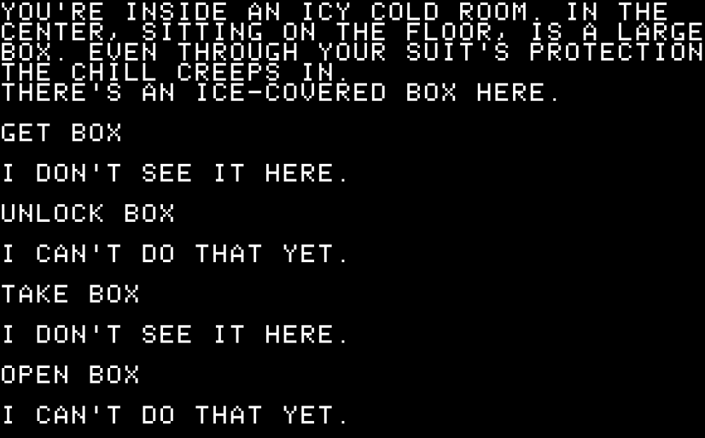 We now have a giant passel of languages customized to write text adventures, but in 1981, technical issues — like not even bothering to interpret a verb and noun separately — were still a major barrier.