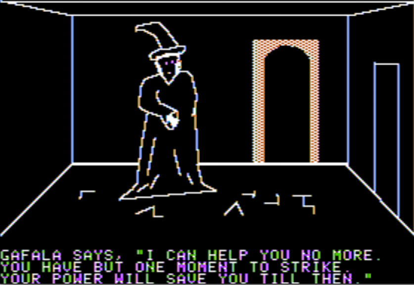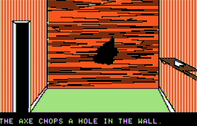 There were numerous points where I struggled with the parser, but this was the worst. You need to DROP CRYSTAL BALL and then LOOK, but DROP doesn’t give any indication the ball went in the hole, so I kept trying PUT CRYSTAL BALL and PLACE CRYSTAL BALL and the like. Also, I needed the walkthrough to realize you can LOOK after the vision is done (and the crystal ball is gone) to have the sword mystically appear.