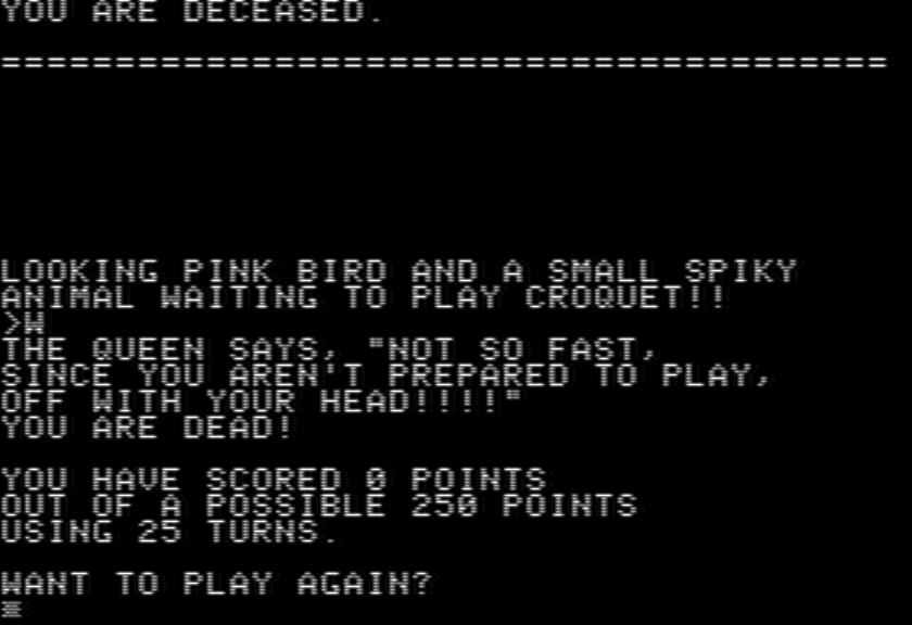 With the plays on words that you describe, was this the game which allowed you to “get fork” when the room description says that you’ve reached a fork in the road? Seems like the kind of thing this game would have done (and I don’t remember where that particular gag puzzle came from)
