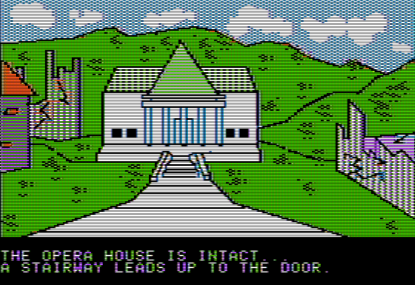 This is partially just cultural inertia — after all, strategy games of the time, from Oregon Trail to Taipan, were perfectly comfortable with menus. Even Japan started with a parser, even though the Japanese language doesn’t mesh with the two-word standard so well, and they started getting creative with menus when forced to by constraints. (Adventure in Murkle in particular also drops a parser due to be stuffed into a tiny 4K of space.) There’s design issues, too, but let’s get exploring now and save discussing them for after–