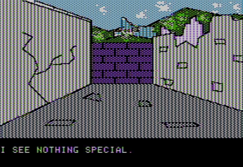 The game is one of the surprisingly few from this era that ditches having a parser (see: Quest, Adventure in Murkle); even games which clearly stretch the machines they are designed for include the tried-and-true two word (or some multi word variant).