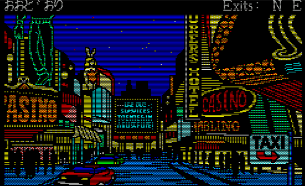A year later — after he had moved on from the game industry, Ken Williams called and indicated interest in a graphical game, offering royalties. As Benton needed money at that moment he turned down 1% royalties for a flat $5000 payment, and he says he would be “sailing the Caribbean right now” had he taken the royalties, as the new series became Leisure Suit Larry. He had, as of this 2006 interview which I’m pulling my information from, played and enjoyed the first Leisure Suit Larry (essentially a remake) but hadn’t tried any of the others. He did not mention what he thought of the Japanese PC-88 (and FM-7 and PC-98 and Sharp X1) conversion Las Vegas, which keeps it as a regular text adventure with graphics, and is the Hi-Res Adventure that Sierra On-Line never made.