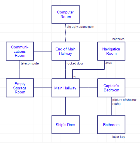 In one of the Aardvark opuses they’d have everything criss-crossed multiple times with abstruse object interactions that take hours to detangle. Here, you pick up a “LAZER KEY”, walk a few steps away, unlock a door, and find the SPACE GORN.