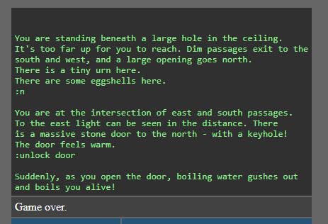 The “text adventure engine” that Joe made is up on his webpage