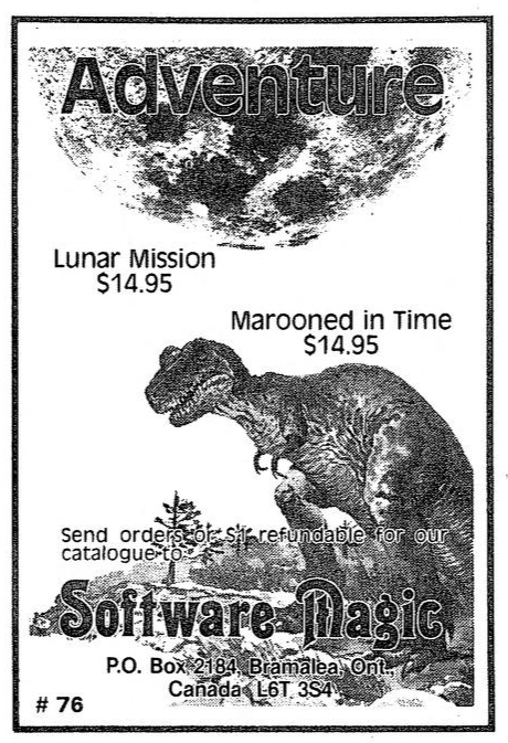 Yeah, Dale popped the game entries into CASA. It’s always a real shame to see instances where none of the releases seem to have survived from a company. I think the earliest Software Magic advert I’ve seen was in the December 1981 issue of Computing Today… where the prices were both in Canadian Dollars and, because it’s a UK publication, Sterling! There’s various adverts, reviews and magazine mentions between 1981 and 1983 but after that, like you say, they seem to vanish. Working out of a Bramalea post office address means it’s difficult to do any detective work.
