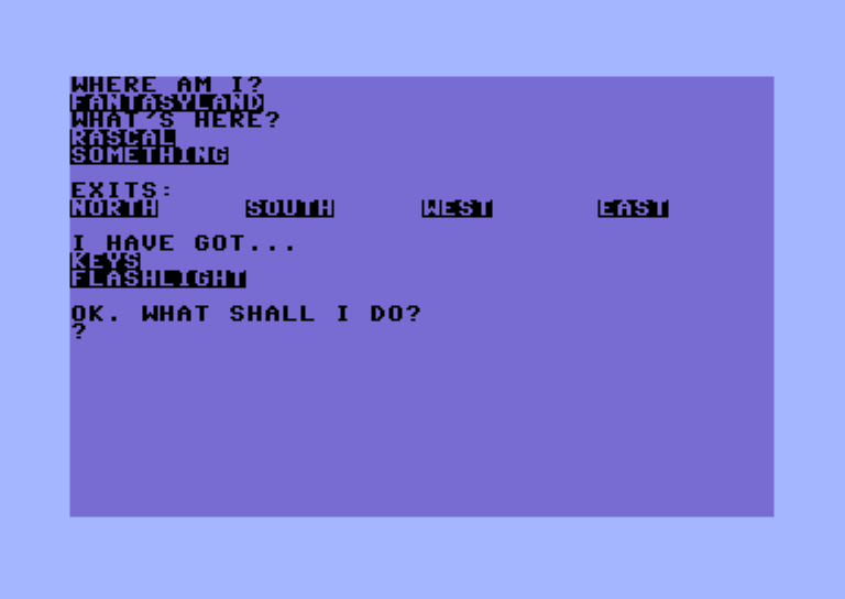 Returning back to Fantasyland, being written for VIC-20 (with the C64 literally just being copying the BASIC code) in under 8K it falls into the same club as other super-minimalist games.