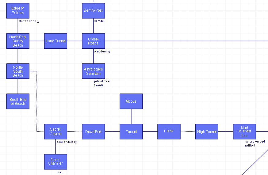 Now, I did say I made one solve by luck. I was noodling around with the “monkey puzzle” room and had gone back and forth a few times, typed “look”, and found a secret passage.