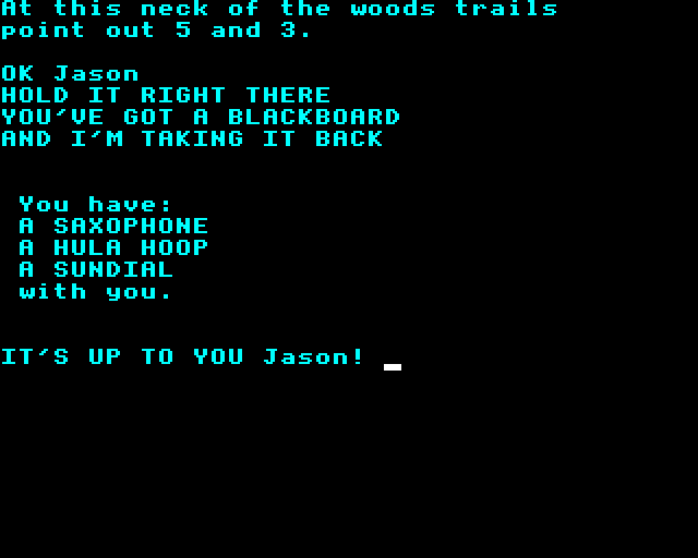 3. The game does basically resolve around mastering how to deal with the Piman in order to get the correct combination of gifts… I think that most of the enjoyment for people at the time was discovering the clues to the external competition… which can be found in all sorts of places… even the game map itself. As a standalone adventure, I think the consensus is that it is really isn’t that enjoyable. It passed me by back in the day and, despite being a ZX Spectrum text adventure player, it’s not one I’ve felt the need to spend much time with.