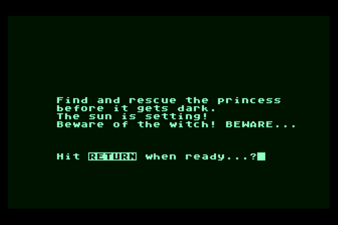 Regarding the plot (“find and rescue the princess”), weirdly enough, we haven’t had a lot of princess-rescue games. Technically the very first adventure (Castle) is one, but there’s also a prince you can rescue, or you can rescue both the prince and princess. Wizard and the Princess played it straight. Dragon Quest Adventure kind of played it straight but also you weren’t supposed to kill the dragon and you get a kiss. Treasure Hunt had a “black book” with the “addresses and phone numbers of every beautiful princess that lives in Vermont”. The Program Power game just titled Adventure had a princess that kept running away.