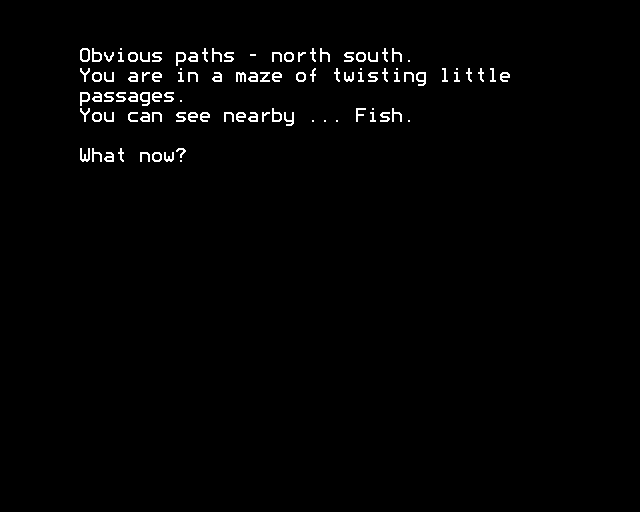 Using a Fish to map things out. Incidentally, if you take the fish from its original spot it gets described as a “dead fish”, which suggests another way I may have already softlocked the game.