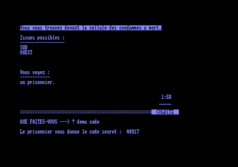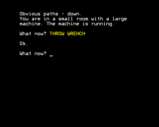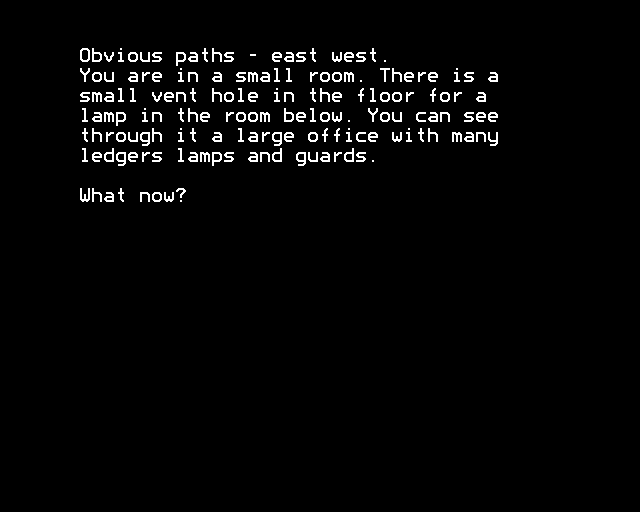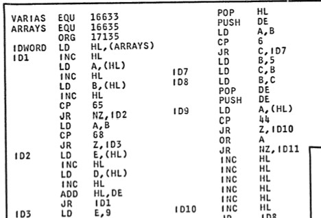For example (as pointed out in chapter 10), when entering input, the game checks every word entered against every word listed in the word table, which is extremely slow, meaning if you feel inclined to swear at the game (perhaps inspired by French Colditz) you have to wait an agonizingly long time before the game tells you it doesn’t understand. As an alternative, the book provides actual machine code.
