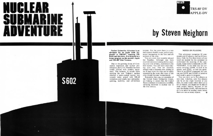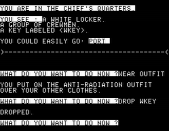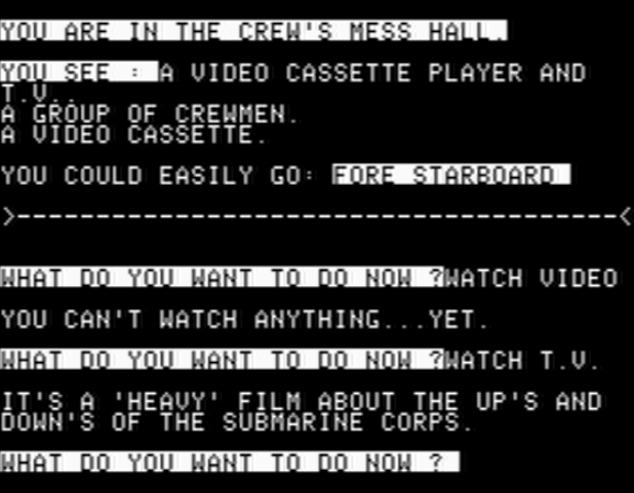 Still, a submarine makes for a compact adventure map where it is completely realistic to have movement constrained. (See Nuclear Sub from 1980.)