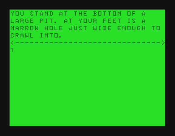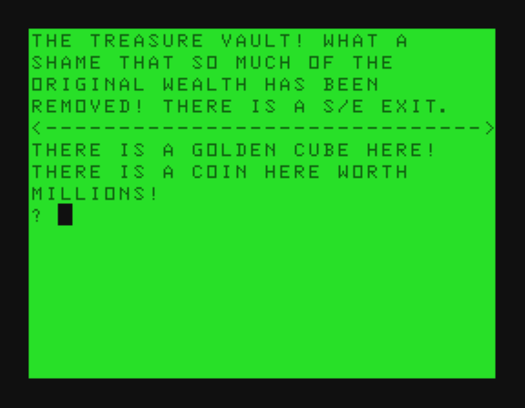 Normally on this blog when we’ve seen the word “adventure” followed by a number, it is meant to designate one of the many modifications of Crowther/Woods Adventure, like Adventure 448. That’s not the case here. The author wanted to brag about the number of rooms. They might even be right to brag.