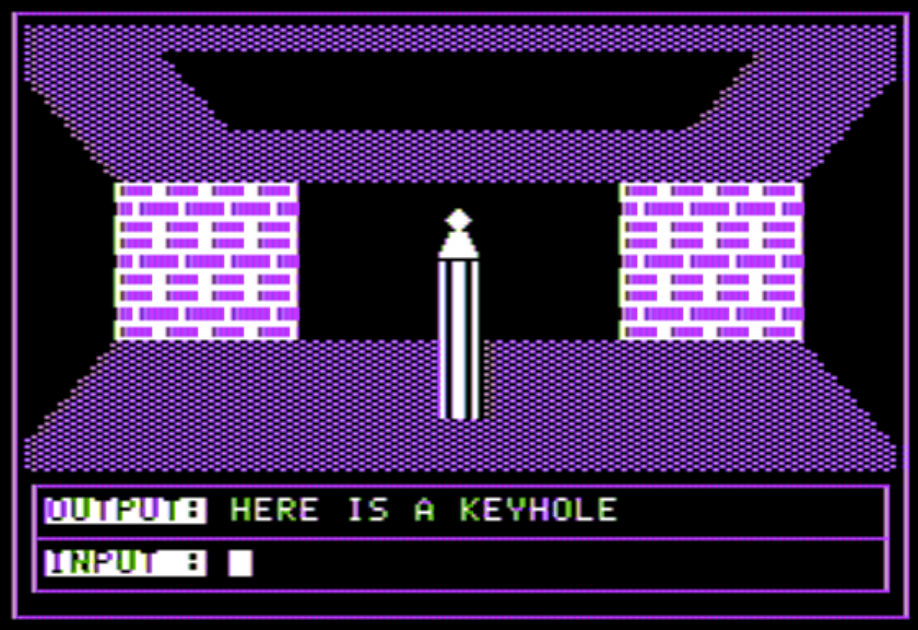 With keyhole in hand I could return to the Caretaker. The same phrase as in the previous game (THE ISLAND IS A COMPUTER GAME) worked, and it gives a setup that will let you “unplug the computer”.