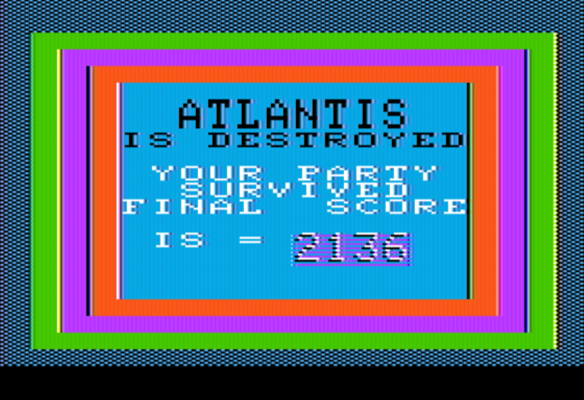 I never did find the spell Shrink. I took the gamble that maybe — due to the random nature of the game — I didn’t really need all the spells, and fortunately I was right. I took off, flew northeast long enough, and eventually found Atlantis.