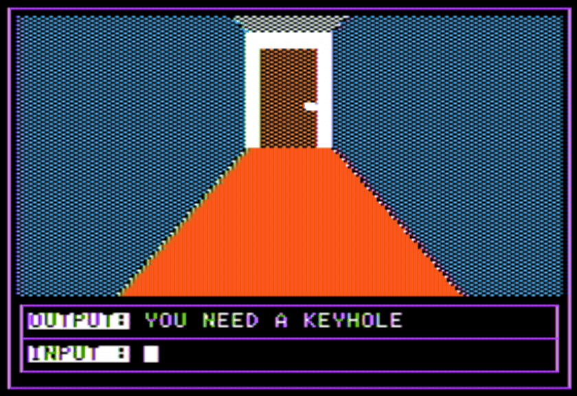 David Mullich’s work might be one of the most famous Apple II games of 1980 — insofar as Apple II games from that year could get famous — but I found it too janky and difficult to control to really get the experience the author was hoping. Some of this was certainly intentional: the premise has you on an Island trying to escape, with a confusing array of events trying to pry out the reason why you resigned from your top-secret job (rendered in-game as a three-digit code).