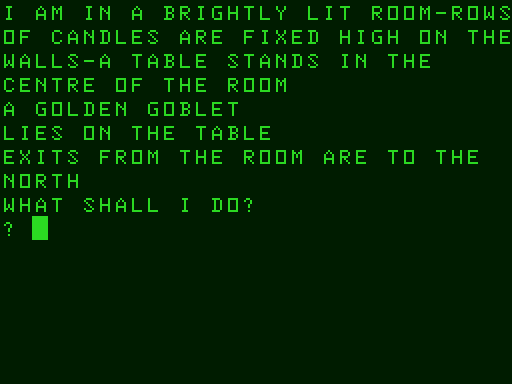 Now the game enters yet another completely different mode. This is a maze where the walls are invisible, and you have to keep using GO DIRECTION in order to search around.
