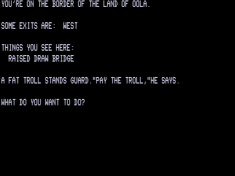 That was extraordinarily early in our journey. While Scott Adams (with Alexis) had cranked out his first six games, and Greg Hassett had a library of work, there were only a handful of adventure games available on home computers otherwise. Dog Star Adventure had been printed in Softside, but there otherwise guidance was limited how to write an adventure game, and you had odd experiments like Dante’s Inferno from Softside January 1980, which was done entirely with movement.