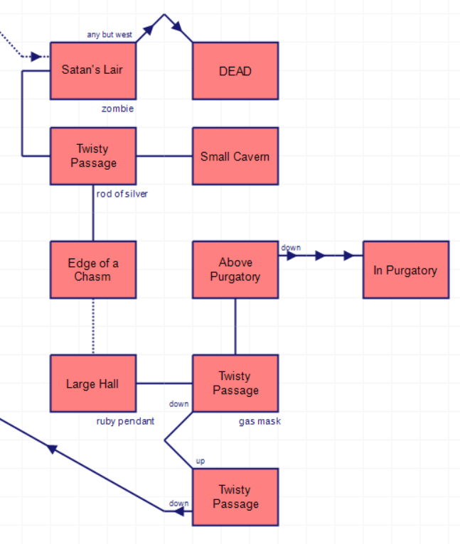 Other than that you can find a gas mask and ruby pendant and leave, going down which will end up somehow bringing you back to the underground floor. You are passing through twisty passages without much distinguishing them once the items are gone so I had the fun case of mapping out rooms without realizing I was just re-creating the map I had already made.