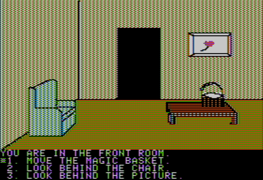 There’s nothing in the end here terribly novel in terms of content (…except for the rooms represented by abstract pictures…) but that doesn’t take away from the historical and technical interest, and the fact people kept trying to do adventures on every machine possible, kind of like how modern systems are required to run DOOM.