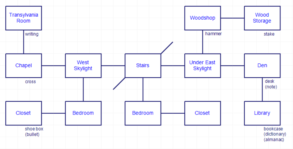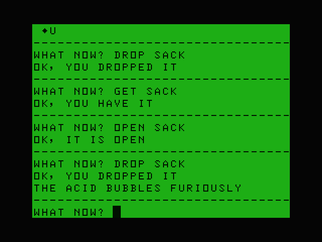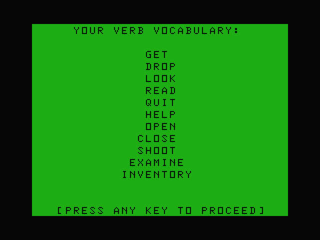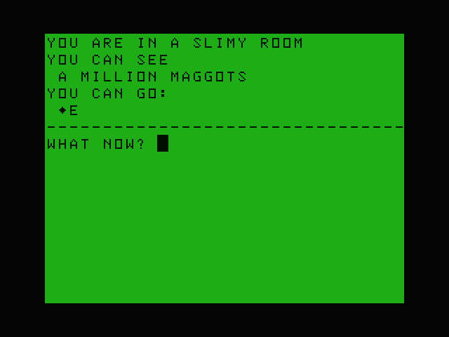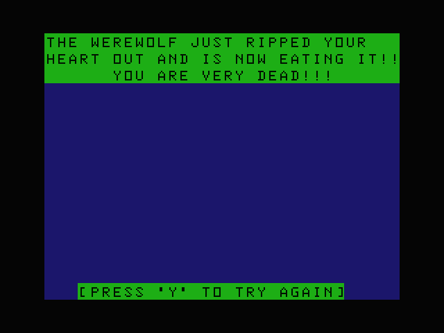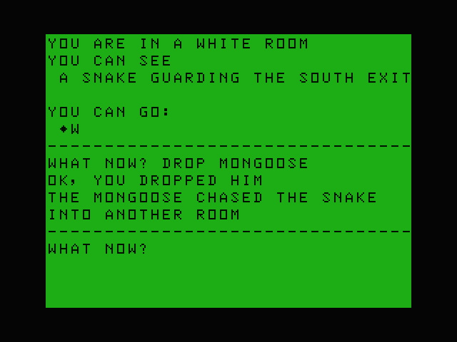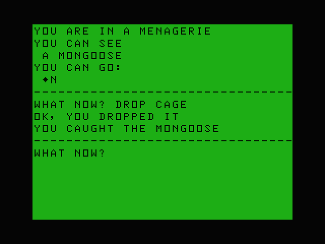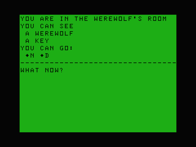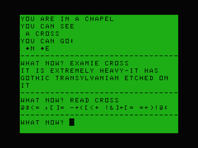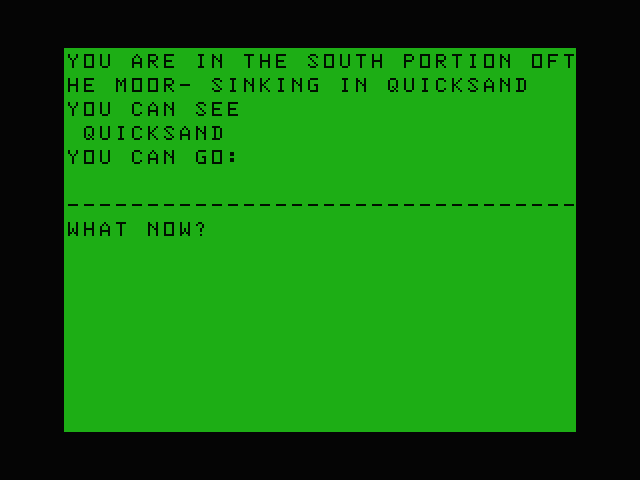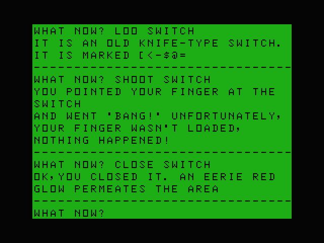 OK, fine: I appreciate the various fake-out moments were a general theme (wrong exit down to the vampire, wrong hammer, wrong victim) so it made the story feel more dense than normal. As whole this held up much better than I’d expect from such absolutely minimal parts. Mansion of Doom built good atmosphere with just single-word room descriptions.