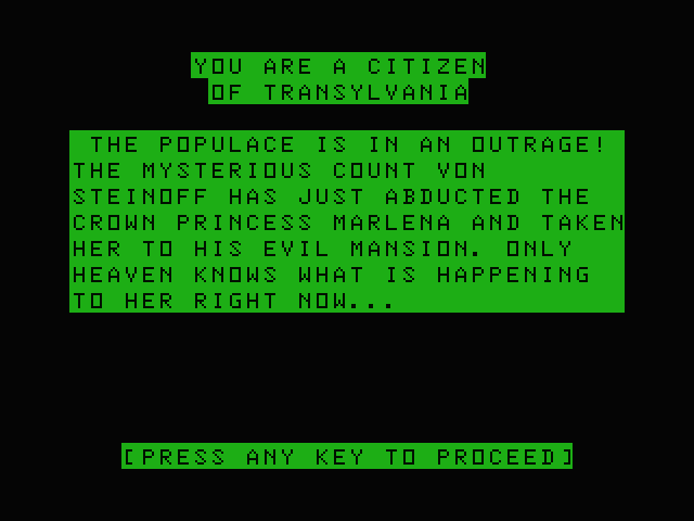 So let’s turn to Mansion of Doom, which at least makes a solid end to the “trilogy”. We are here to rescue a princess from a vampire.