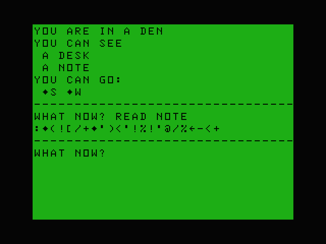 Now you can start translating cryptograms. For example, just to the north there’s a desk with a “note”.