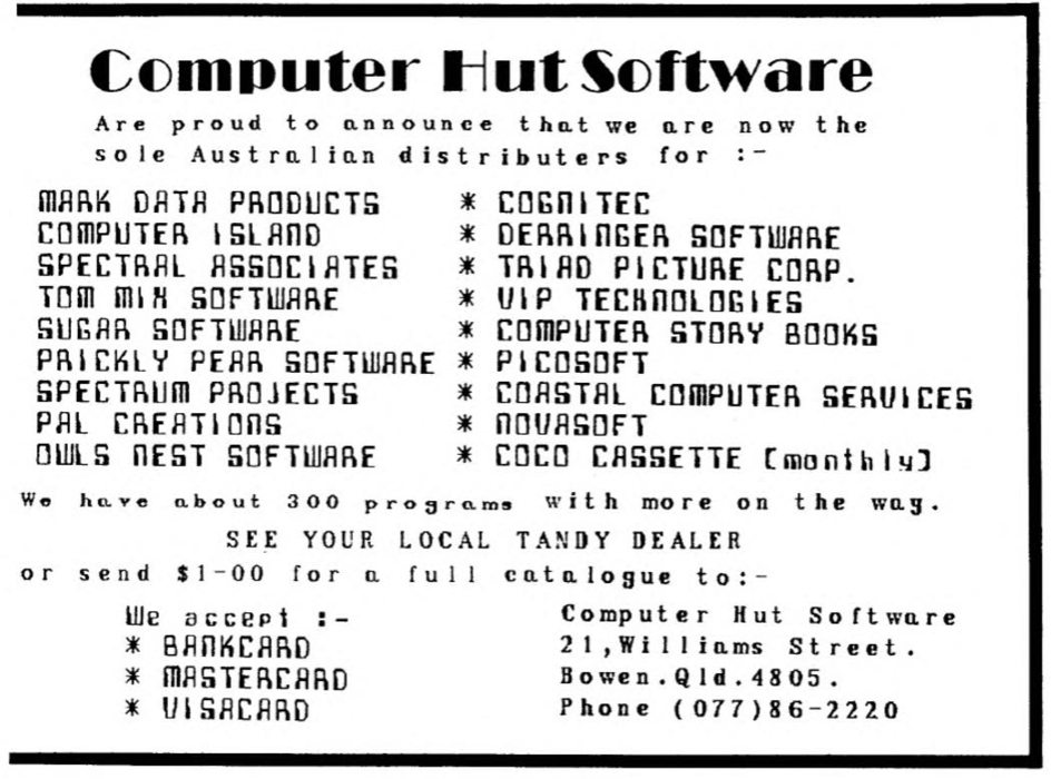 It also is the last game listed with the CASA Solution Archive from the pair of Leroy C. Smith and Paul Austin. I’d love to thus dump a lot more historical knowledge, but alas, I haven’t turned up much since the letter to the editor last time. I did find out that PAL Creations had an Australian distributor, as seen in this ad from the Australian version of the Rainbow, March 1986: