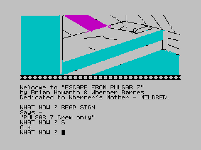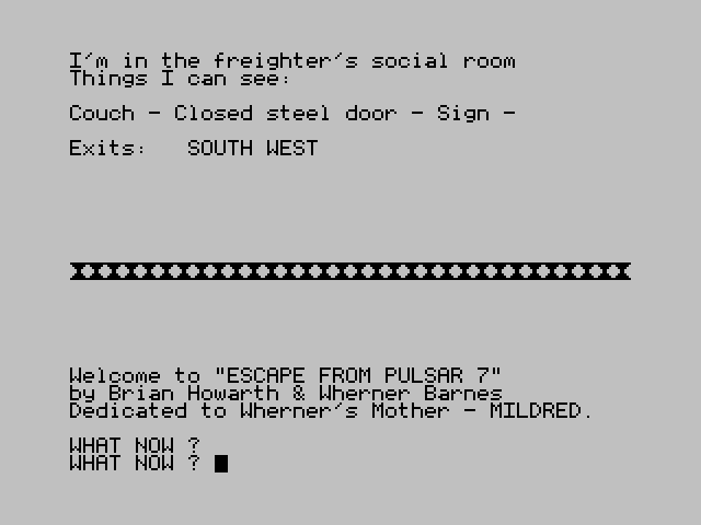 Well, at least we can get into detail about the game itself! The premise is that we are part of the crew of the space freighter Pulsar 7, with a mission to obtain and deliver the ore Redennium to planetoids in the Xanotar system. An alien creature was given as part of the payment from one of the planets.
