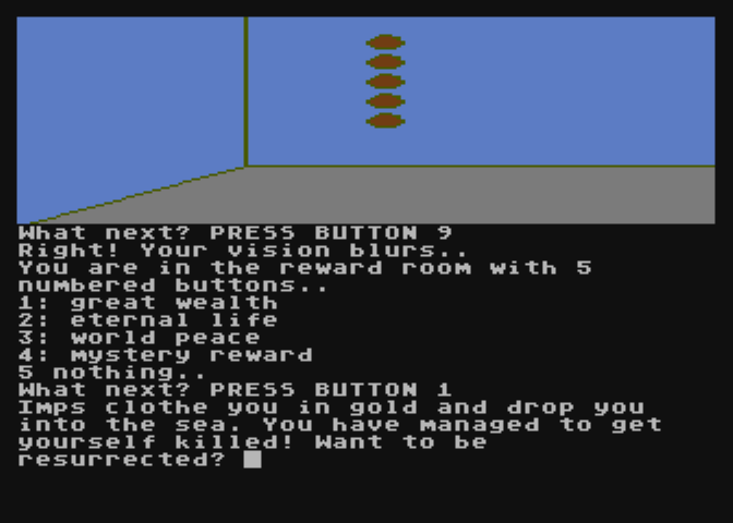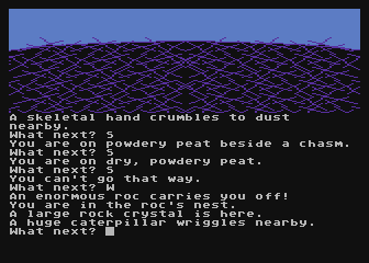 The reason the scene was puzzling is I couldn’t get it to trigger again. I ended up trying out the BBC Micro 1982 version (text-only) because I remember from Adventure Quest the RNG working slightly differently. While it wasn’t quite that, what I found is just making a beeline to have the Rakshasa scene first before anything always works.