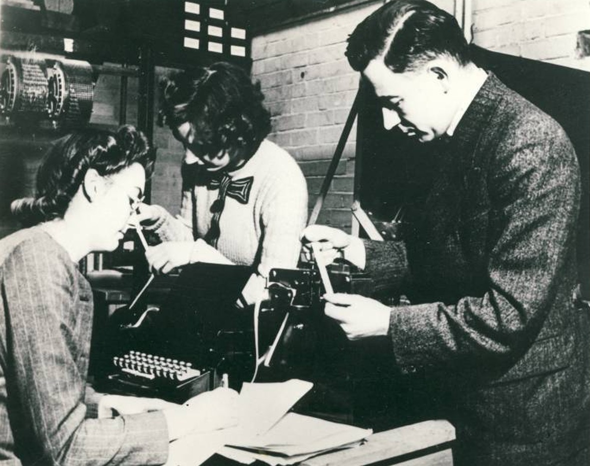 December 1946, Kathleen Britten, Xenia Sweeting and Andrew Booth. Kathleen Britten was soon to be Kathleen Booth.