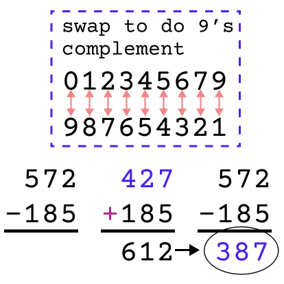 Since there was no built-in subtraction function, it was instead done with the 9’s complement method.