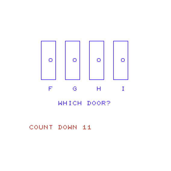 Here you need to (as shown) type LIGHT SWITCH to make any further progress. Then a TV shows a short sequence of letters, and four doors are revealed.