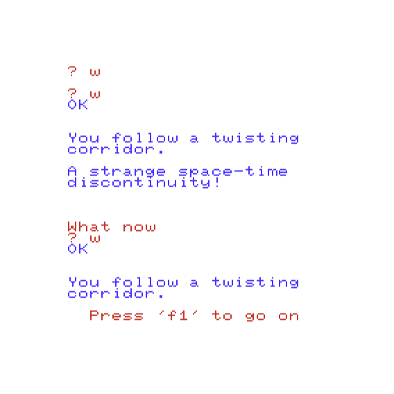 Pimania had a bit where you needed to hit the “pi” key on the ZX Spectrum keyboard but at least the button was marked that way! (And it was needed to start the game; it wasn’t in the middle of what seemed to be a different kind of puzzle.) From what I gather not everyone used or even understood the function key use. (The article I just linked includes the line “The four function keys on the right hand side of the VIC 20 are probably the most neglected part of the whole computer.”)