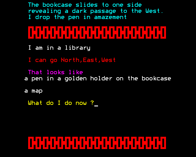Writing an adventure game is very similar to writing a novel. Everybody can write a few unrelated sentences, but the novelist’s skill comes from stringing sentences together in such a way as to create a tale combining imagination, flair and ingenuity.