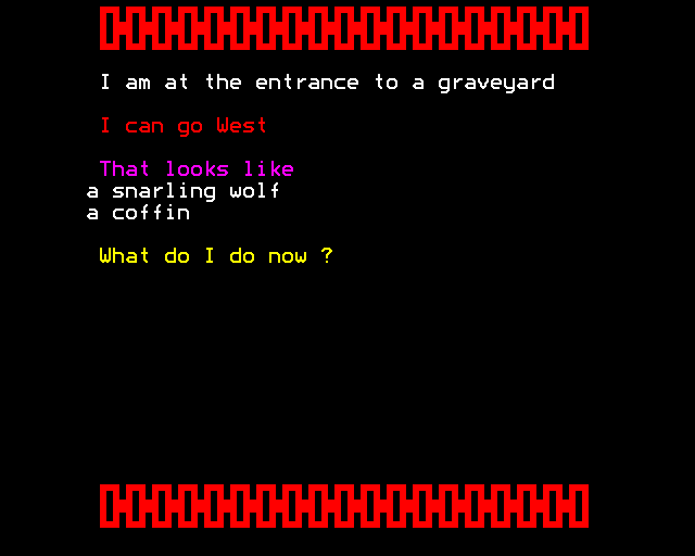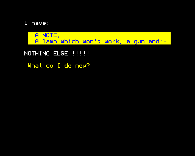 The reason for the “(probably)” is we only have copies of two of the Silverlind adventures: Haunted House and Passport to Death. Gateway to the Stars (AKA Journey to the Stars) is lost, but assuming it is by Lucas we might see it again under a different name anyway. (I’m suspicious of “A Journey Through Space” which is in his Adventure Programming on the Amstrad book; there’s no tiger or lizard woman but Lucas often renamed things. The book game is allegedly “buggy and impossible to finish” which is another thing common amongst Lucas games.)